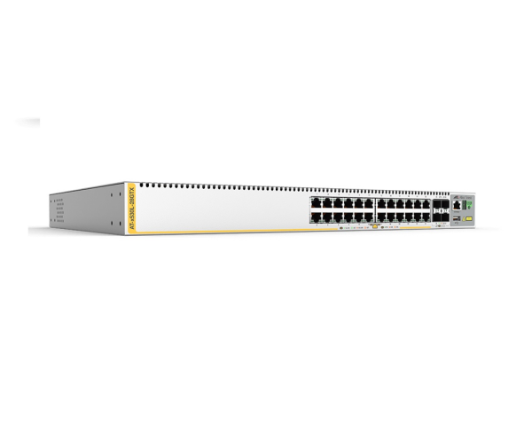 24 x 10/100/1000T ports, L3+ Stackable Switch, 4 x 1G/10G(*) SFP+ uplink ports, single internal power supplie